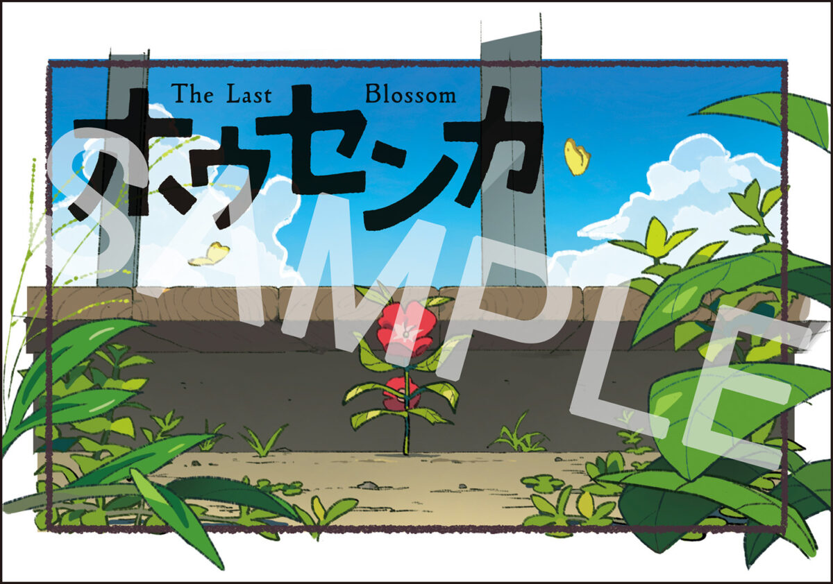 二つ折りポストカードのイラストは監督・キャラクターデザインの木下麦による描き下ろし。開くと、原作・脚本の此元和津也による原案を、ノベライズを担当した半田畔が小説として書き下ろした、映画『ホウセンカ』ショートストーリー「空白」(全4話)がランダムで収録されています。