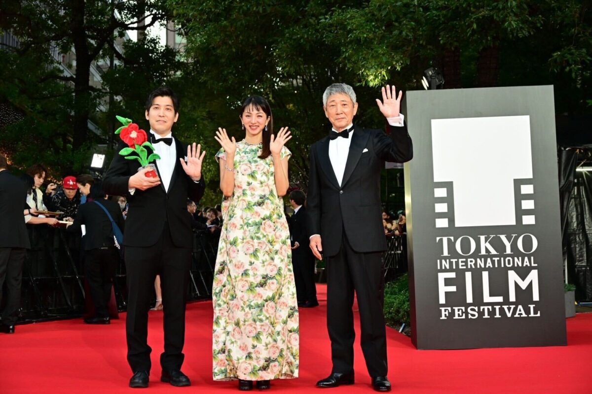 終点近くで待機していた報道陣からハートポーズをリクエストされると、小林がぎこちなくも手でハートを作る姿に満島が思わず吹き出す場面も。3人とも和気藹々としながら東京国際映画祭ならではのレッドカーペットを楽しんでいる様子だった。